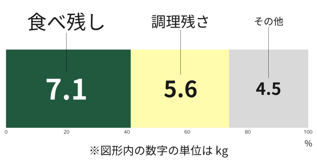 上のグラフの通り、食べ残しが17.2kgのうち7.1kgと、全体の4割を占めています。