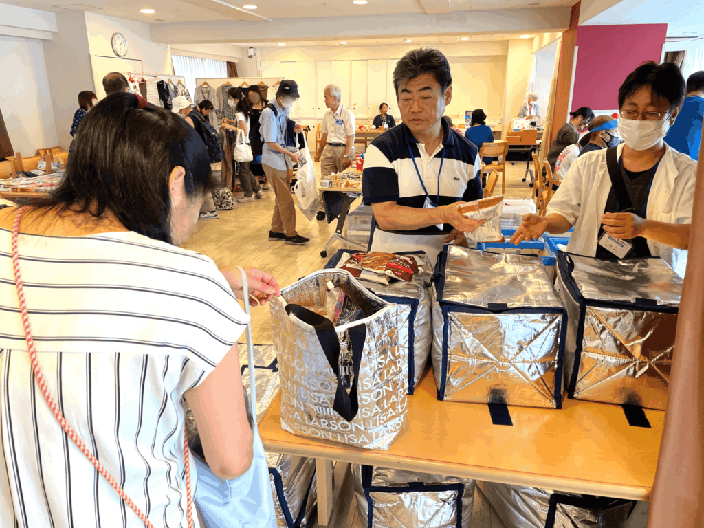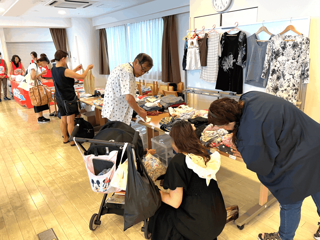 最近はちょうど夏ということもあり水泳用の水着やタオルなど季節に応じた寄付品も受け取っています。それをひとり親家庭のお母さんやお子さんたちにお渡ししています。